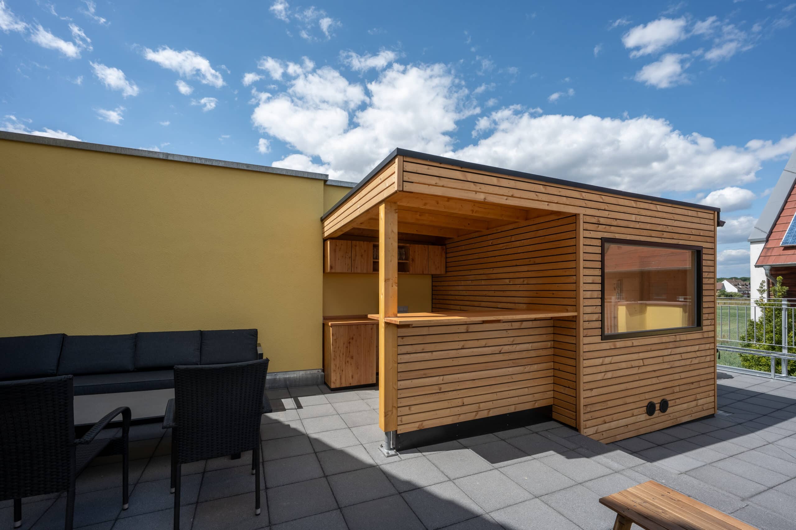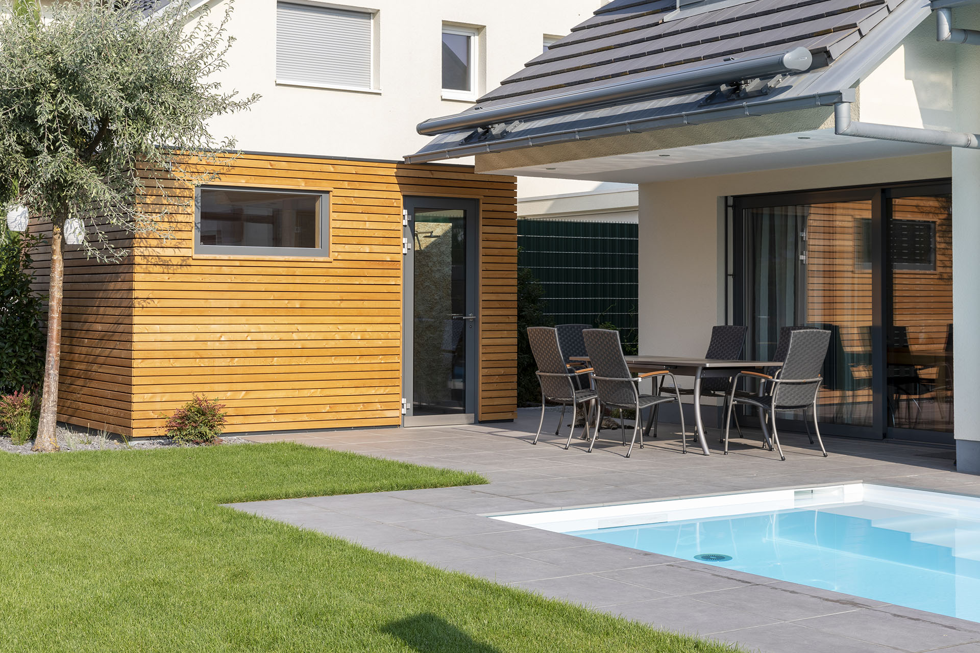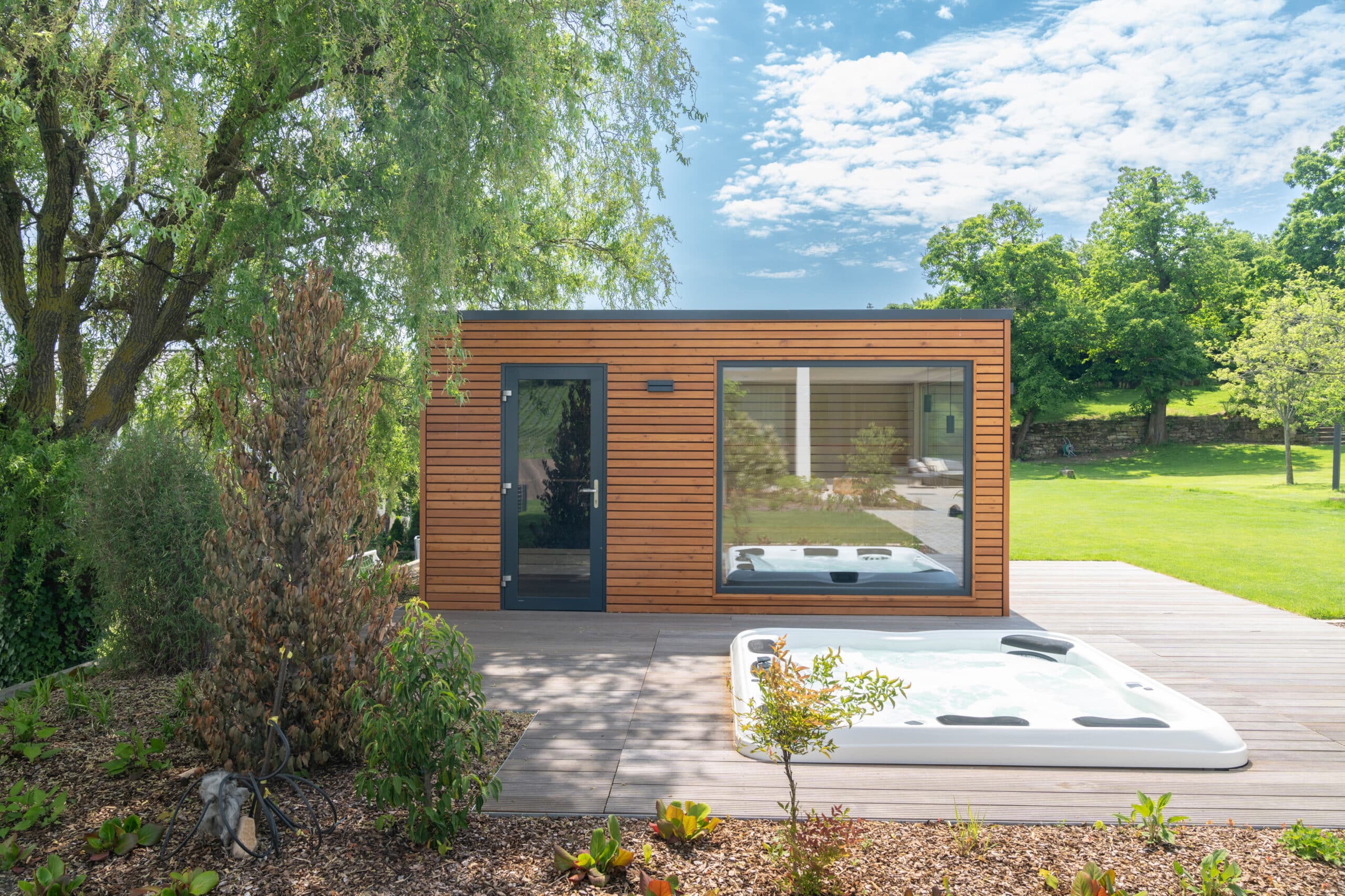 Die Außensauna im eigenen Garten lässt Sie im Einklang mit der Natur saunieren und vermittelt ein unbeschreibliches Gefühl der Freiheit. Die Planung Ihrer Jockers- Außensauna bedarf einer individuellen Beratung durch unsere Fachberater. Eine frei stehende Sauna-Anlage wetterfest anzufertigen oder doch ein komplettes Saunahaus mit Dusch- bzw. Sanitärbereich oder auch Ruhemöglichkeiten kann komplett Ihren Wünschen angepasst werden. Die Gestaltung des Bodens sowie die Ausbildung des Daches ist bei jeder Außensauna individuell umsetzbar.
