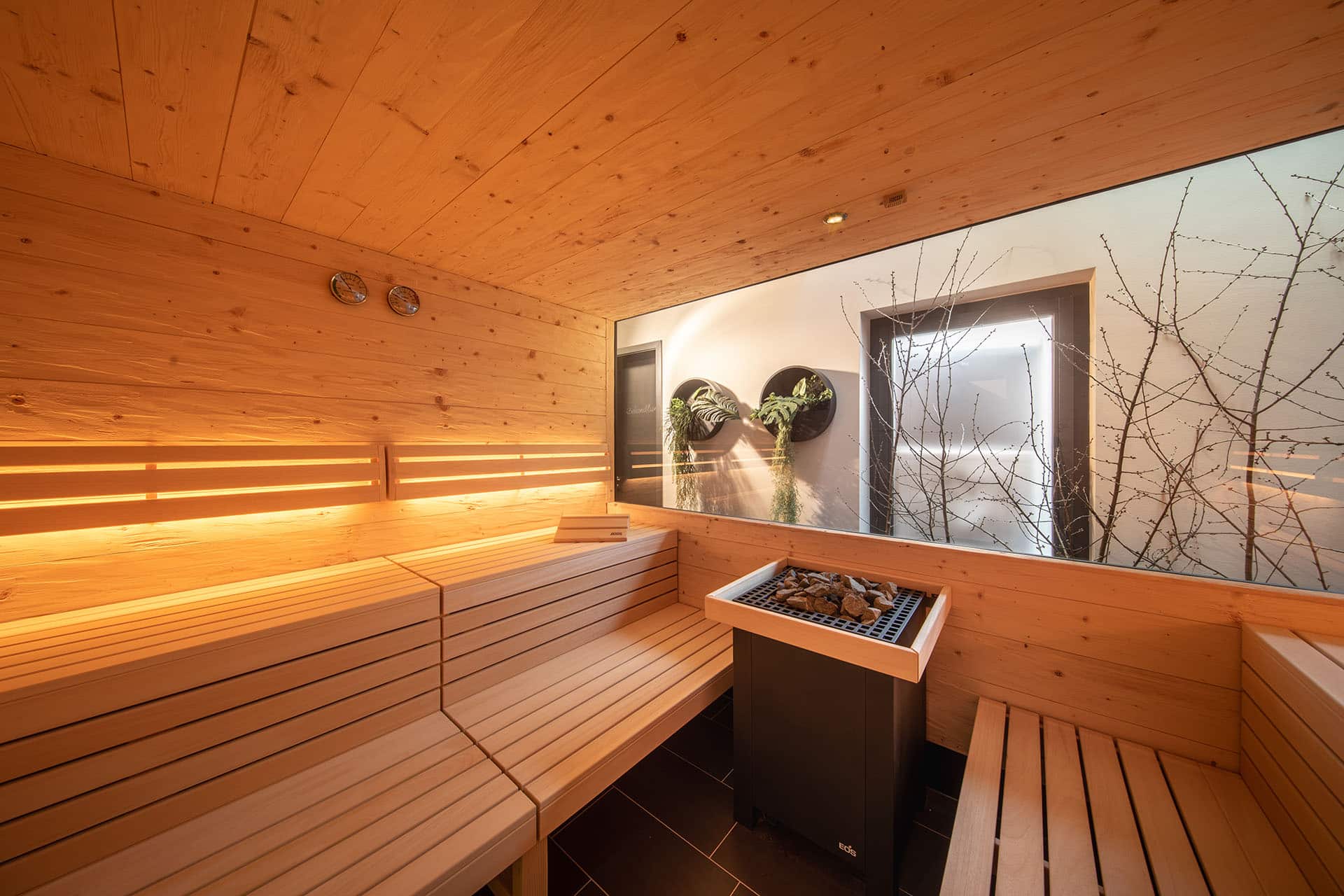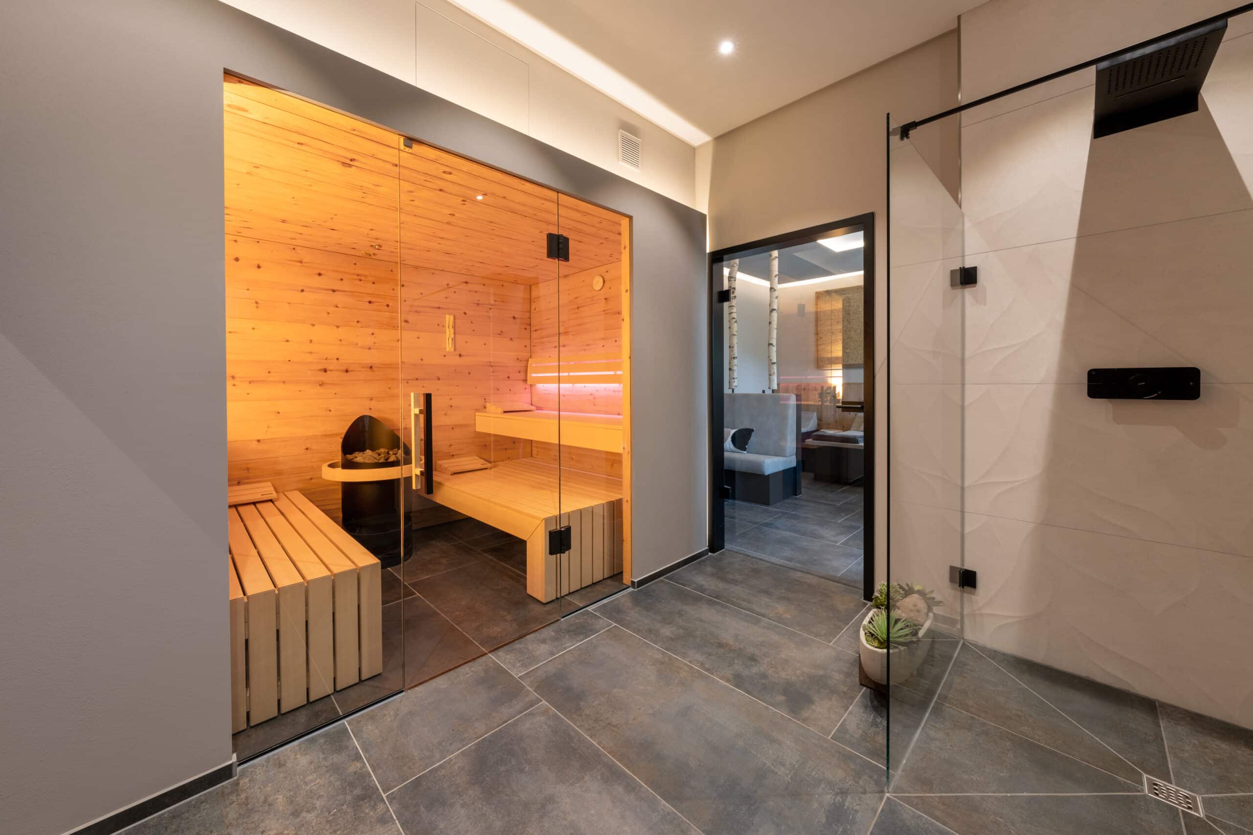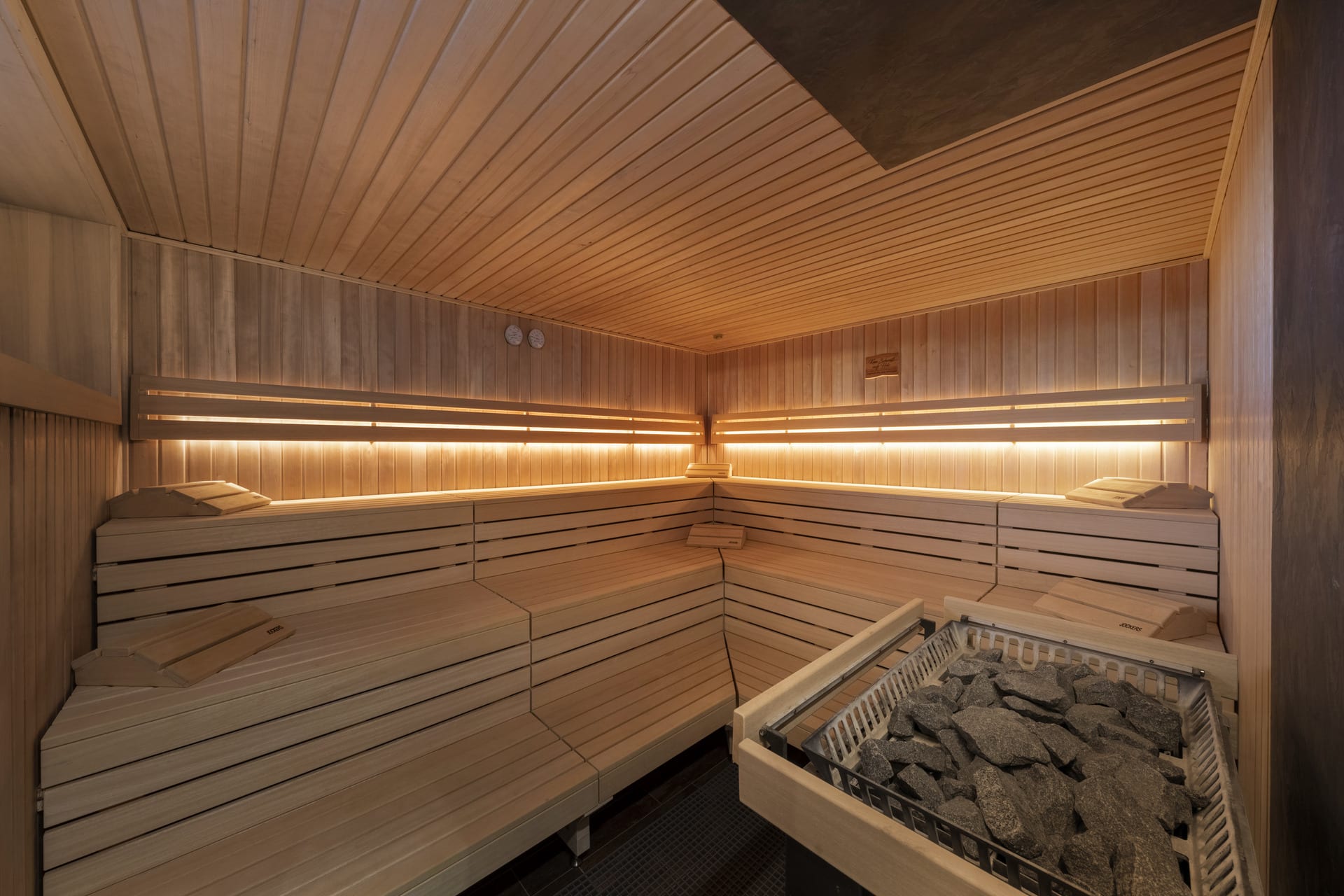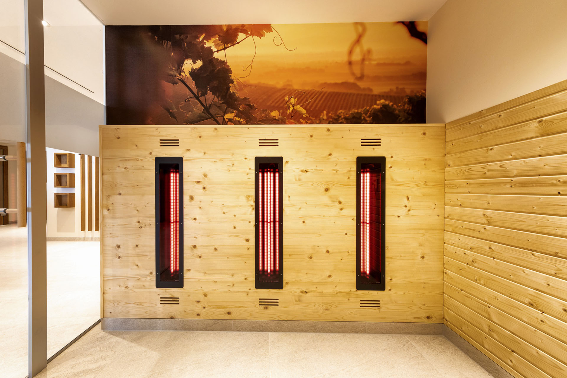 Der neue Wellnessbereich mit einer finnischen Aufgusssauna und einer separaten Damensauna lädt die Sportlerinnen und Sportler, nach einem anstrengenden Workout, zum Erholen ein. Ebenso wurden die Dusch- und Ruheräume komplett saniert. Die kanadische Hemlocktanne als Holzverkleidung besticht in beiden Saunen durch ihre elegante Optik. Steinplatten im Ofenbereich, indirekte Beleuchtungen und weitere Design- Elemente machen beide Kabinen zu etwas Besonderem.