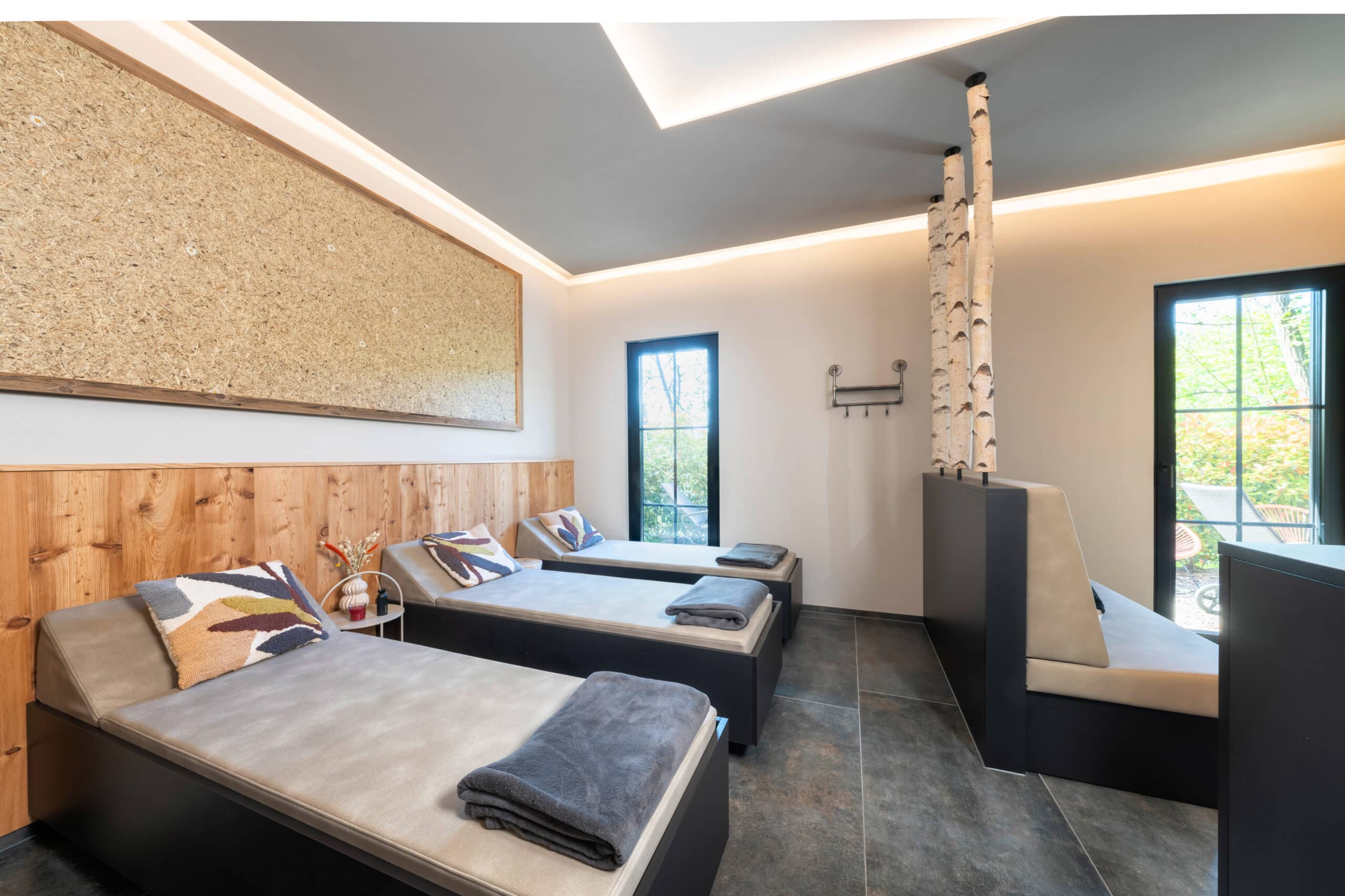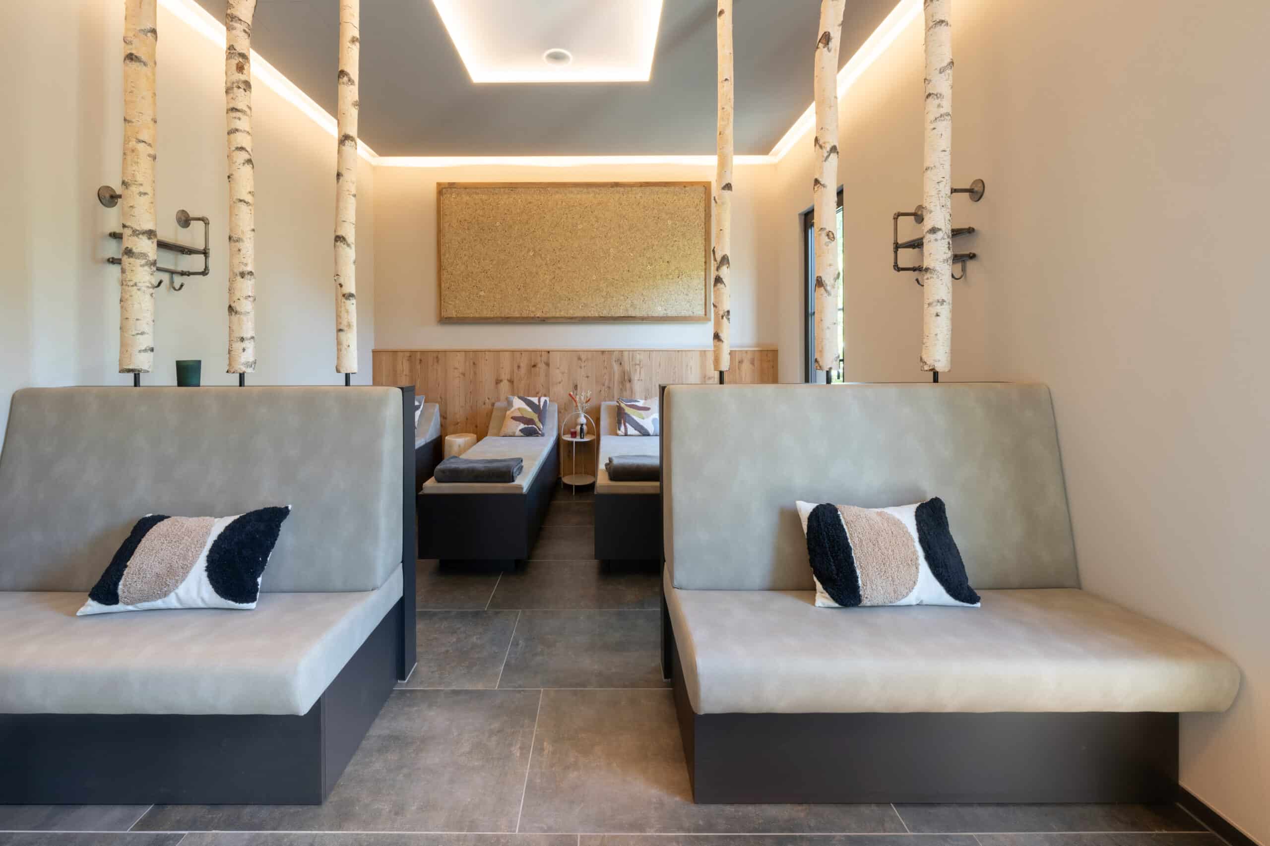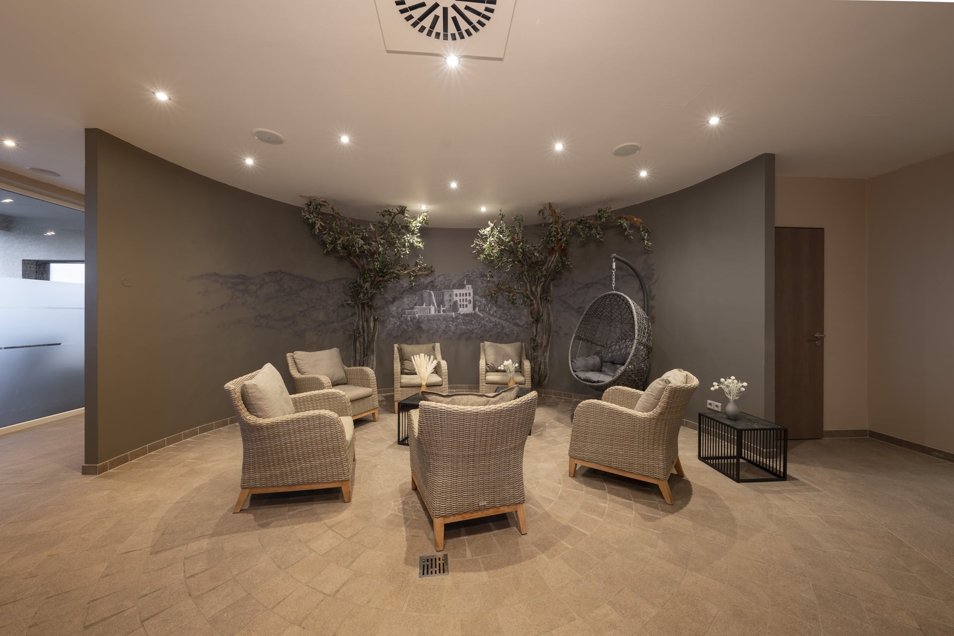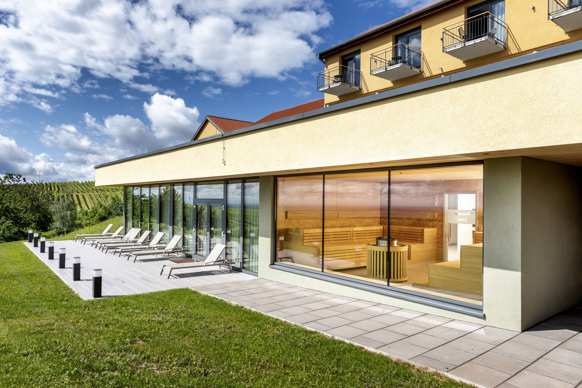 Nirgendwo sonst ist man dem Wein näher als im WeinHotel Fritz Walter: Schon seit Jahrzehnten ermöglicht die Familie Walter es anspruchsvollen Gästen, direkt im Weingut Fritz Walter ihren Urlaub zu verbringen. Der neu erbaute Bereich des Hotels wurde mit einem stylischen Wellnessbereich ergänzt. Sowohl eine Finnische Sauna aus „gehacktem und gebürstetem“ Fichtenholz sowie eine Bio-Zirben-Sauna und eine Infrarotkabine bietet den Hotelgästen eine tolle Auswahl für einen unvergesslichen Wellnessurlaub. Nach Ihrem Saunagang können Sie im Ruheraum die Zeit genießen und einfach nur entspannen.